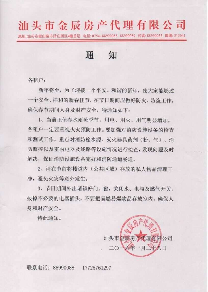 關(guān)于春節(jié)期間的安全通知