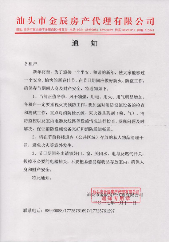 【金辰動態】2017年春節安全通知