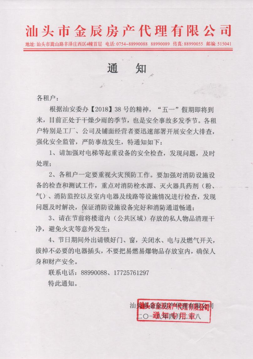 金辰公司2024年勞動(dòng)節(jié)安全通知