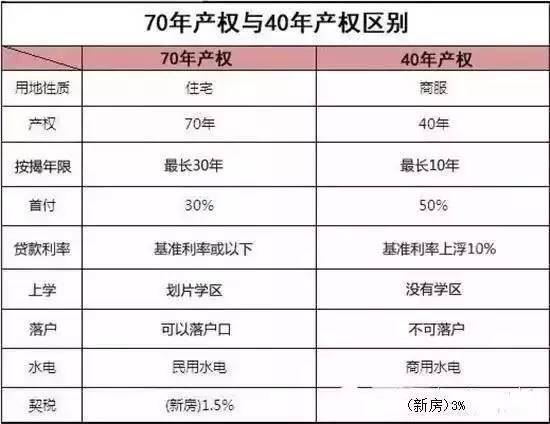 下面從五個方面來說一下40年和70年產權的不同區別: