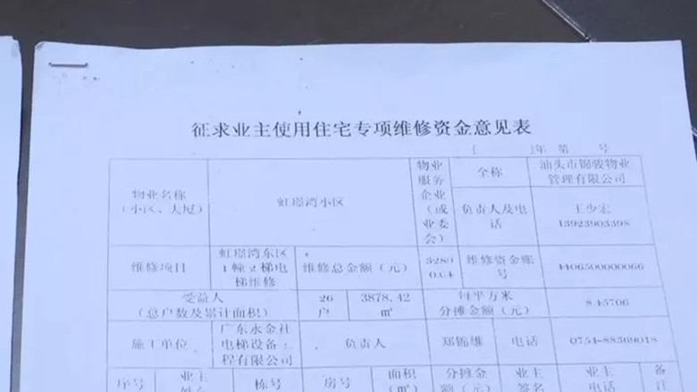 龍湖區外砂錦繡虹璟灣小區是在2011年6月交付使用的樓盤,去年10月份,電梯維保公司在日常保養檢查中發現,小區西區1棟4梯電梯的曳引繩和曳引輪嚴重磨損,安全性全面下降。為了保障電梯的安全使用,小區物業公司向市房管部門提出了使用住宅專項維修資金的申請。虹璟灣小區由此成為我市首個申請并獲準使用住宅專項維修資金的小區。