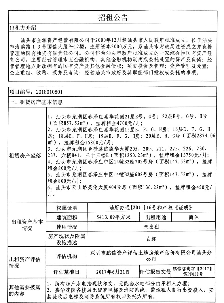 - 地址:汕頭市龍湖區春澤莊嘉華花園等6宗房產
